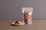 有機オートミール・有機ココナッツオイル・有機玄米粉・おからパウダーを主に、名前そのままに有機ごま・青のり・ちりめんじゃこを焼き込みました。